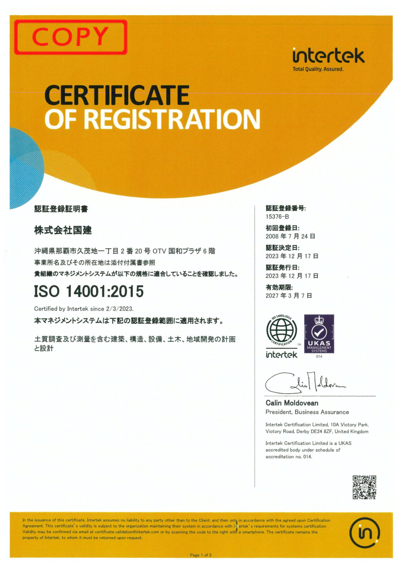 - ISO 14001認証登録