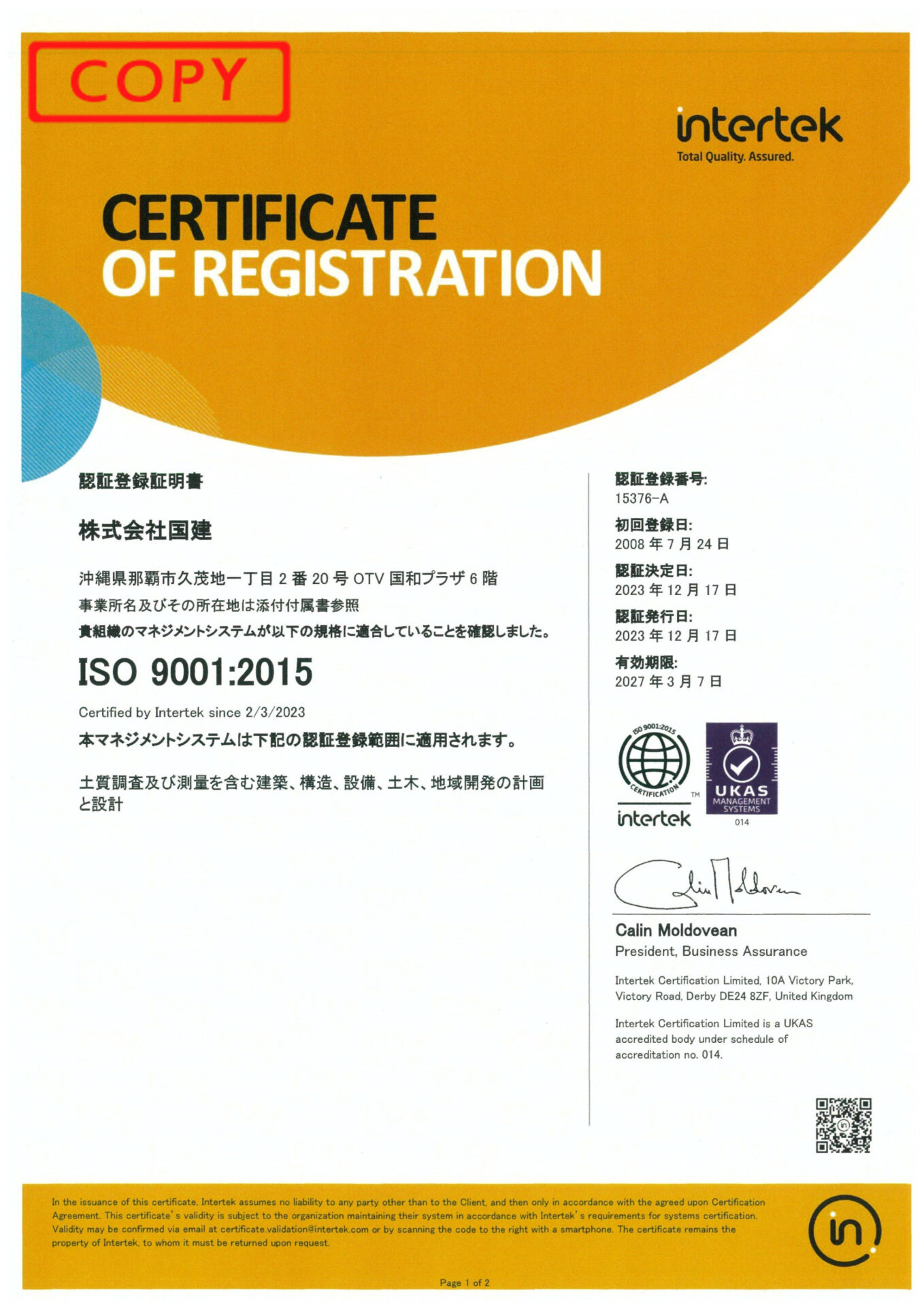 - ISO 9001認証登録