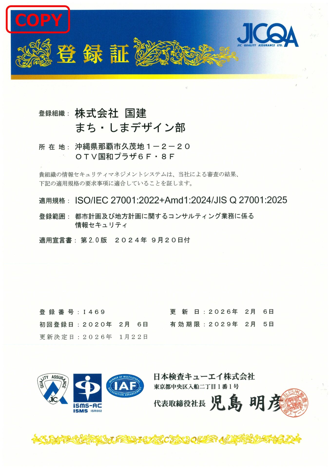 ISMS認証登録(まち・しまデザイン部)