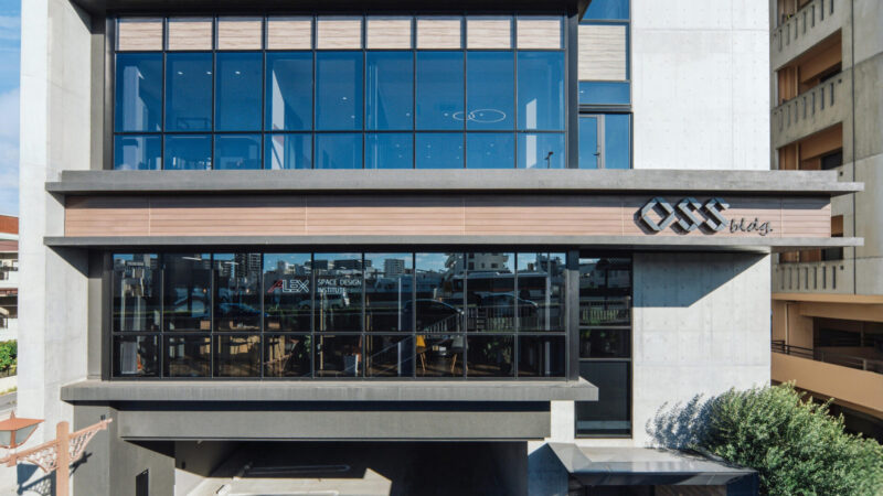 沖縄の建設業を製本事業やCAD支援など多角的なアプローチで半世紀近く支え続けている企業の自社ビル。低層階にはテナントオフィスを計画し、商業ビルとして永らく価値のある建物になるように変化を包容できるデザイン、最上階には様々な入居企業のスタッフが交流するラウンジと屋上テラスを設えた。長らく「紙」とともに歩み続けた企業の自社ビルにふさわしいように、紙の原材料である「木」と、沖縄の街に欠かせない「コンクリート」を融合したデザインを目指した。