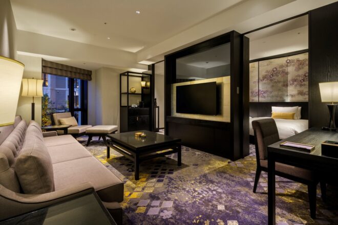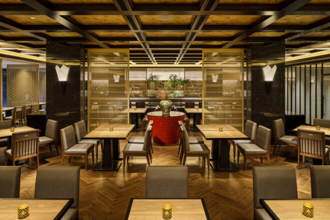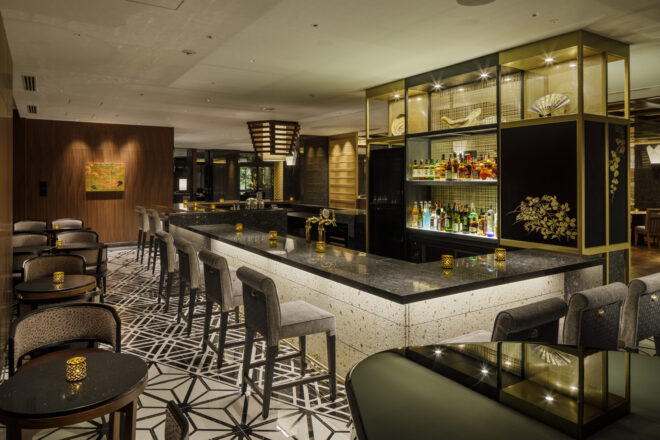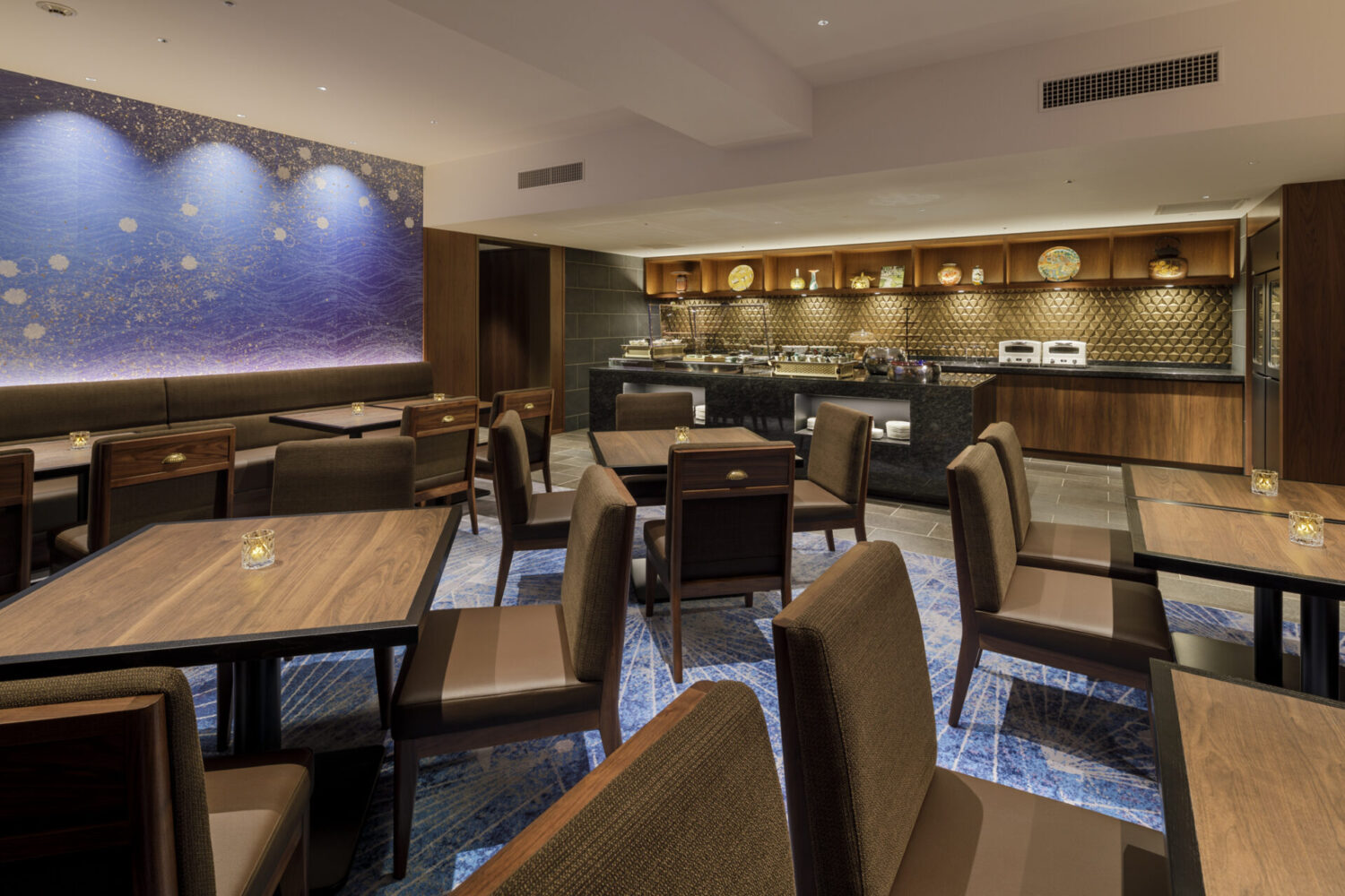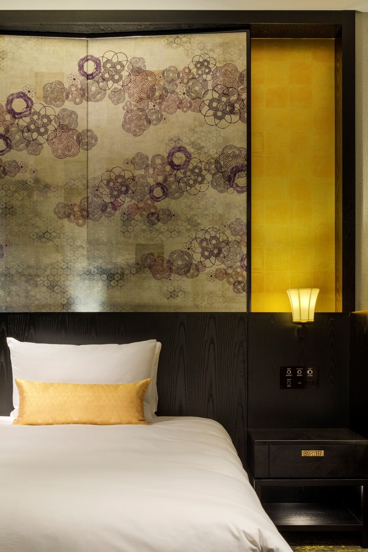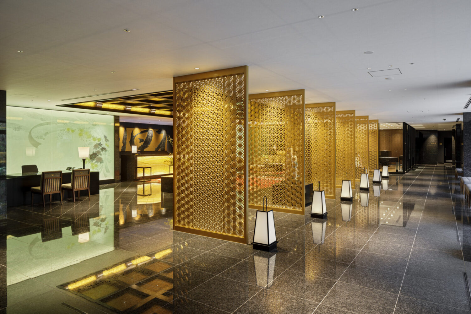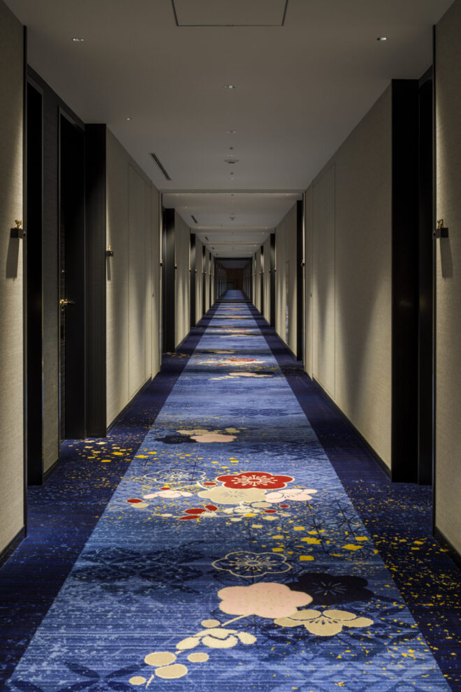 インテリアは「古都、金沢の美を纏うーFeel The Tradition of KANAZAWAー」をデザインコンセプトに、「加賀五彩」という独自の伝統的な5色をカラースキームに構成。加賀友禅や組子格子をはじめ、金箔、輪島塗、九谷焼を取り入れ、加賀百万石の華やかさと普遍的な美を味わえる空間としている。