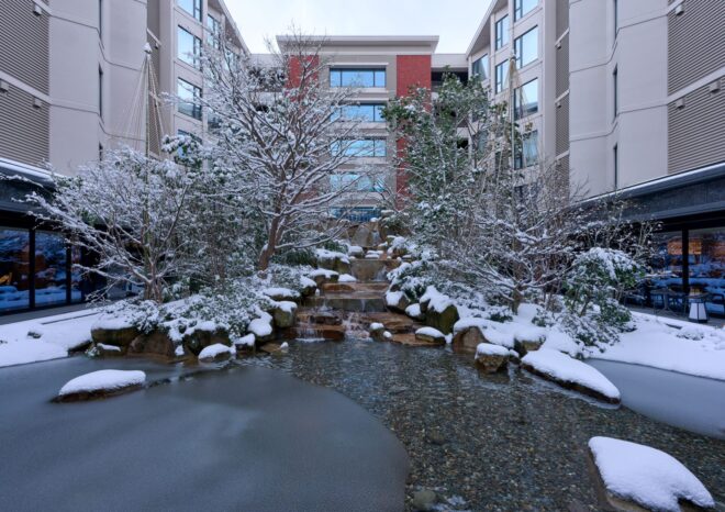 石川県金沢市に建つデスティネーションホテルの計画である。施設近辺には兼六園や金沢城公園、近江町市場などが位置し、デスティネーションホテルとして相応しい場所であるが、敷地の周囲には建物が迫っており景色が望めないため、ホテルの核となる中庭を設けた。